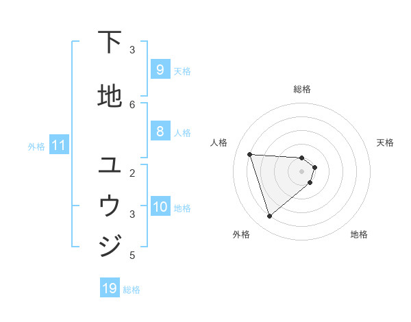 下地 ユウジさんを姓名の画数から五運を鑑定