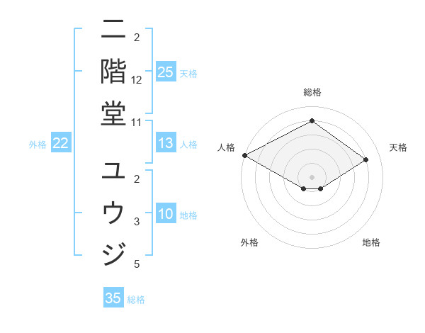 二階堂 ユウジさんを姓名の画数から五運を鑑定