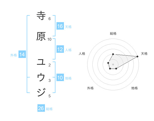 寺原 ユウジさんの総格は26画の2点!