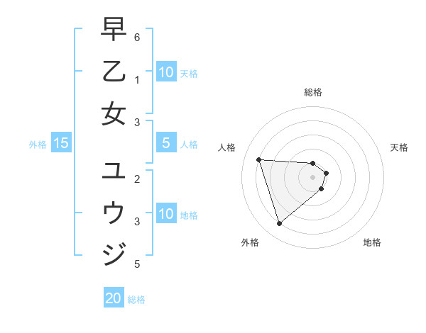 早乙女 ユウジさんを姓名の画数から五運を鑑定