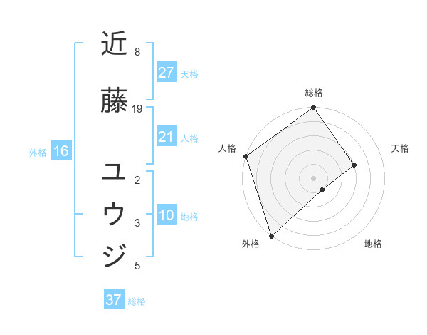 近藤 ユウジさんの総格は37画の5点!