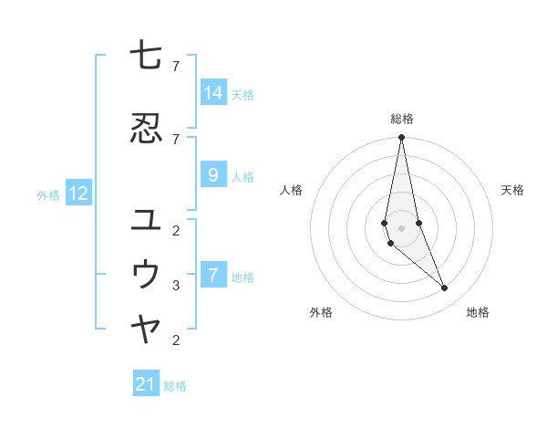 七忍 ユウヤさんを姓名の画数から五運を鑑定