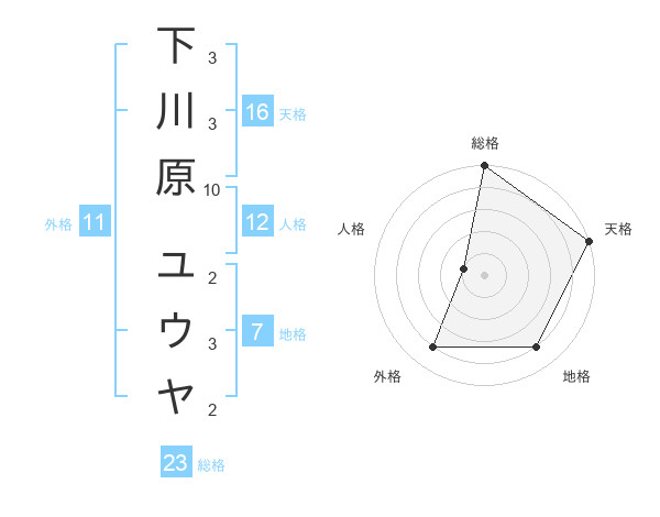 下川原 ユウヤさんを姓名の画数から五運を鑑定