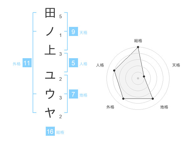 田ノ上 ユウヤさんを姓名の画数から五運を鑑定