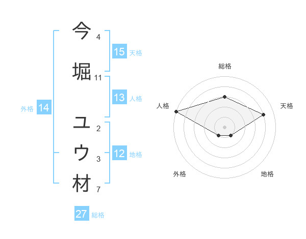 今堀 ユウ材さんを姓名の画数から五運を鑑定
