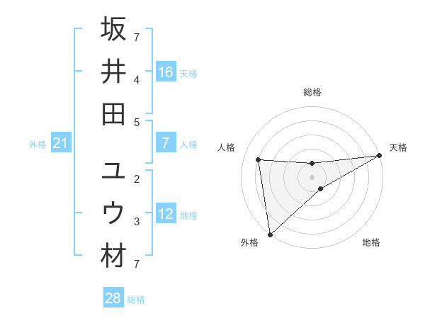 坂井田 ユウ材さんを姓名の画数から五運を鑑定