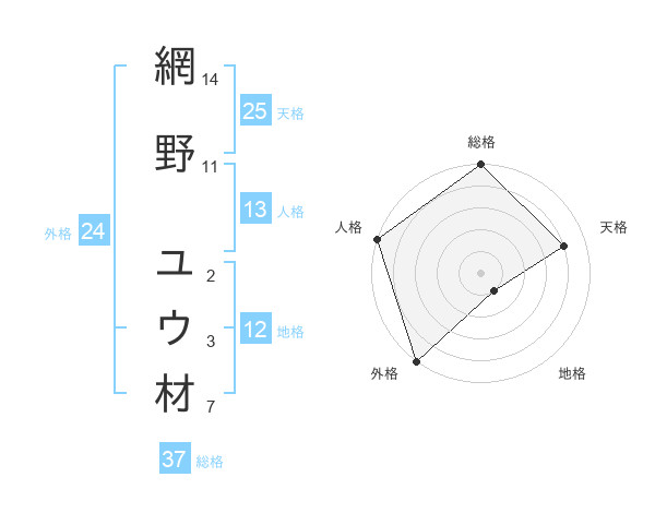 網野 ユウ材さんを姓名の画数から五運を鑑定