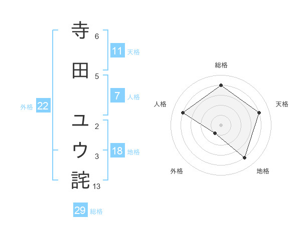 寺田 ユウ詫さんを姓名の画数から五運を鑑定