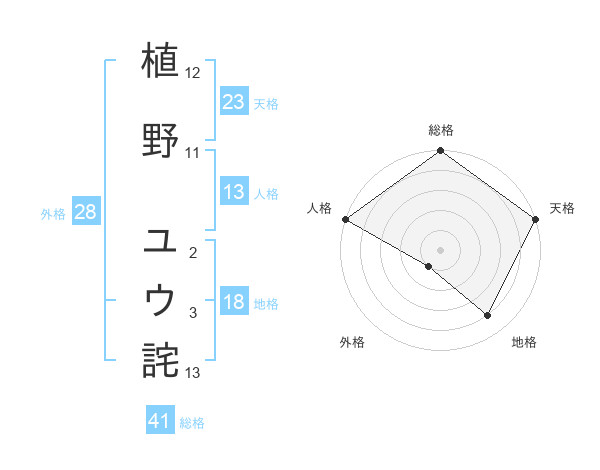 植野 ユウ詫さんを姓名の画数から五運を鑑定
