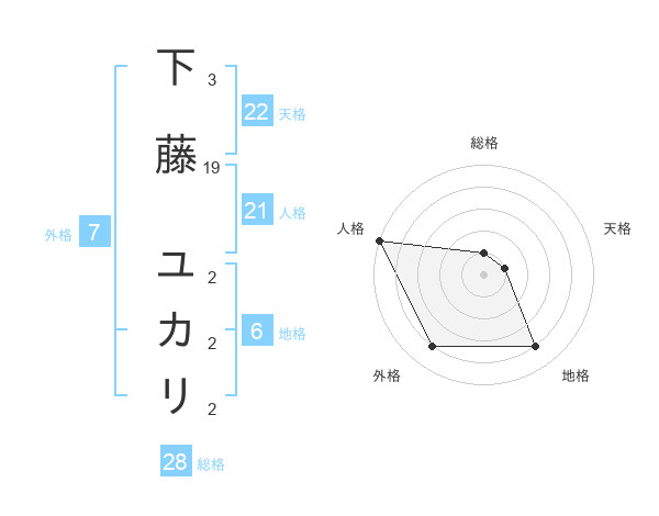 下藤 ユカリさんを姓名の画数から五運を鑑定