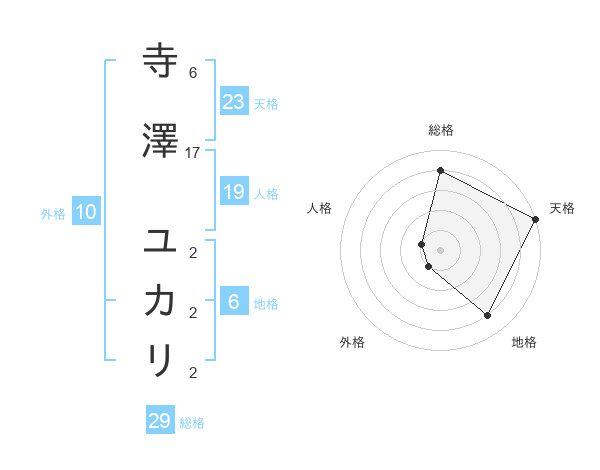 寺澤 ユカリさんを姓名の画数から五運を鑑定
