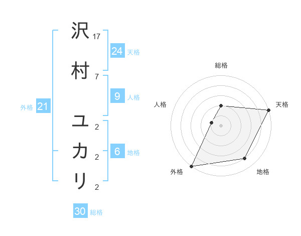 沢村 ユカリさんを姓名の画数から五運を鑑定