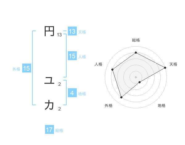 円 ユカさんの総格は17画の4点!