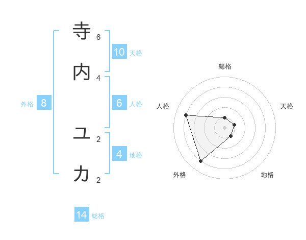 寺内 ユカさんの総格は14画の1点!