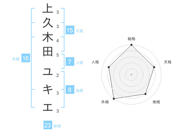 上久木田 ユキエさんを姓名の画数から五運を鑑定