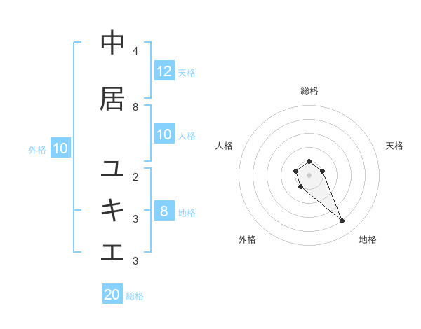 中居 ユキエさんを姓名の画数から五運を鑑定