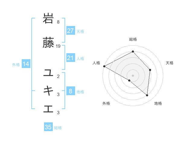 岩藤 ユキエさんの総格は35画の4点!
