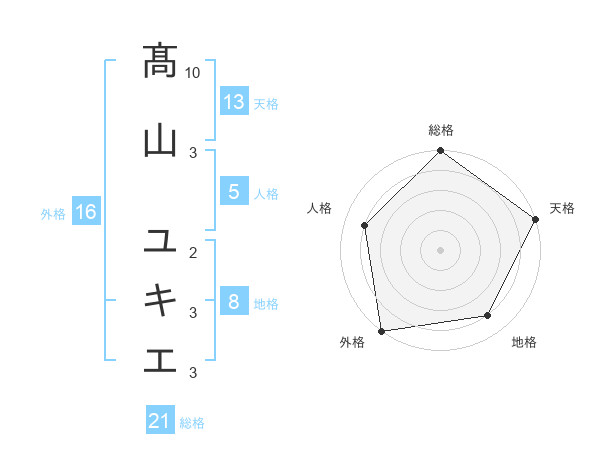 髙山 ユキエさんを姓名の画数から五運を鑑定