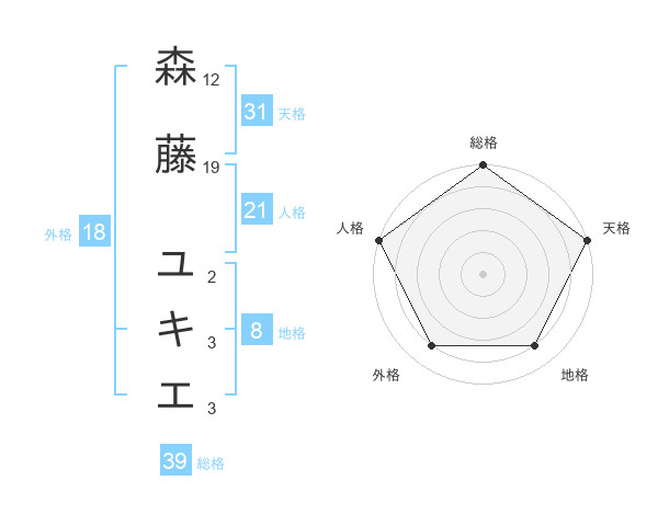 森藤 ユキエさんの総格は39画の5点!