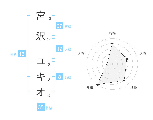 宮沢 ユキオさんを姓名の画数から五運を鑑定