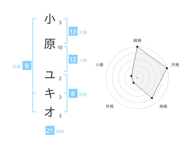小原 ユキオさんを姓名の画数から五運を鑑定