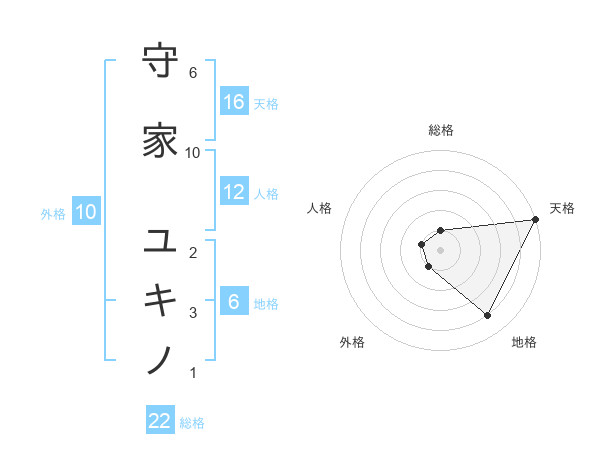 守家 ユキノさんの天格は16画の5点!