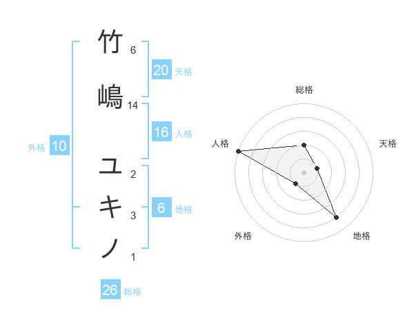 竹嶋 ユキノさんを姓名の画数から五運を鑑定