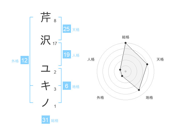 芹沢 ユキノさんの総格は31画の5点!
