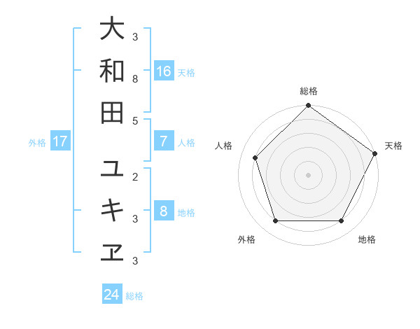 大和田 ユキヱさんを姓名の画数から五運を鑑定