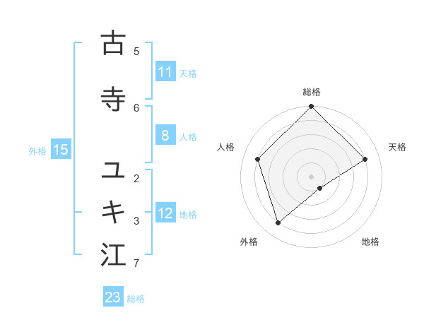 古寺 ユキ江さんを姓名の画数から五運を鑑定