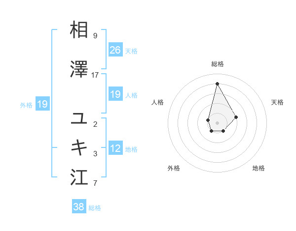 相澤 ユキ江さんを姓名の画数から五運を鑑定