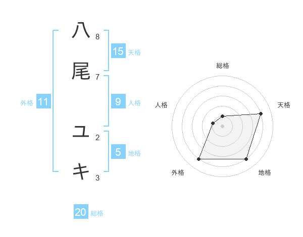 八尾 ユキさんの総格は20画の1点!