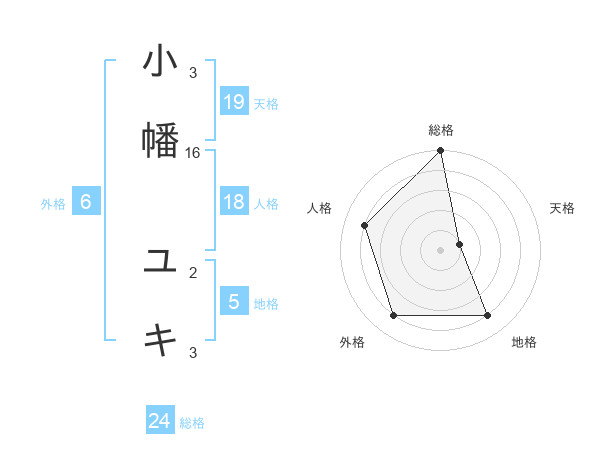 小幡 ユキさんを姓名の画数から五運を鑑定