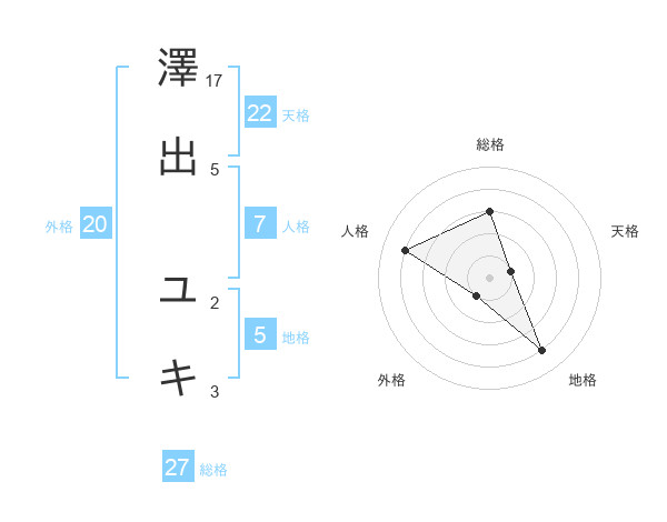 澤出 ユキさんを姓名の画数から五運を鑑定