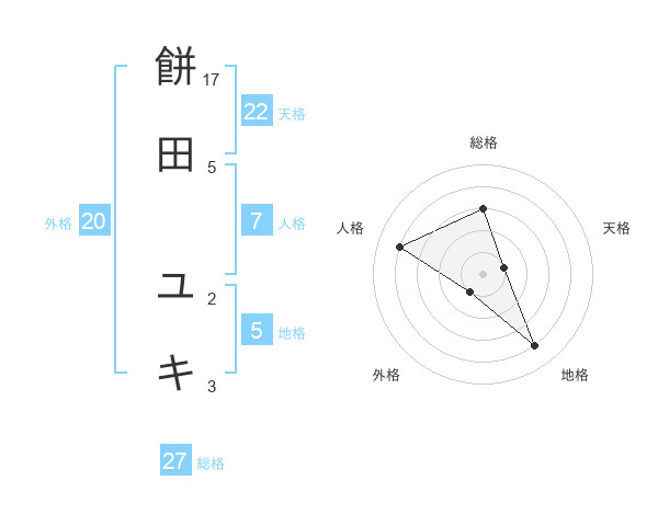 餅田 ユキさんの総格は27画の3点!