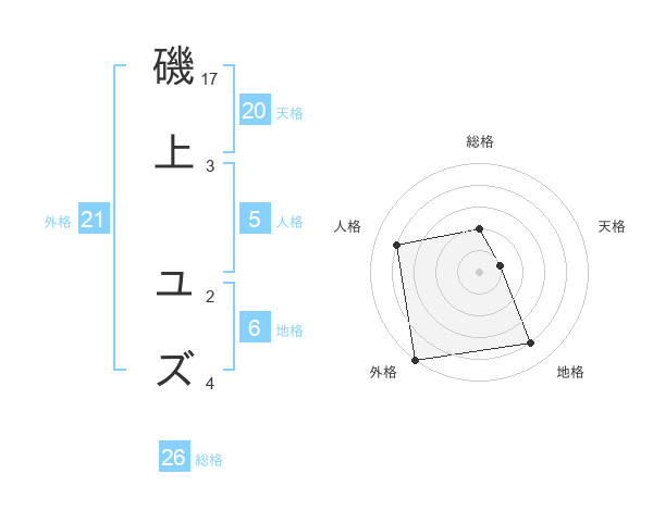 磯上 ユズさんの外格は21画の5点!
