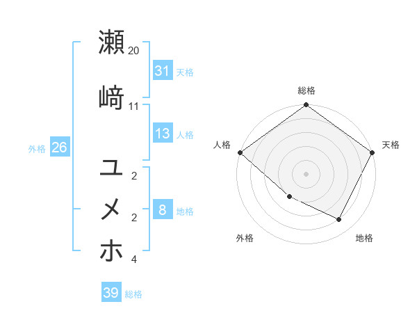 瀬﨑 ユメホさんを姓名の画数から五運を鑑定
