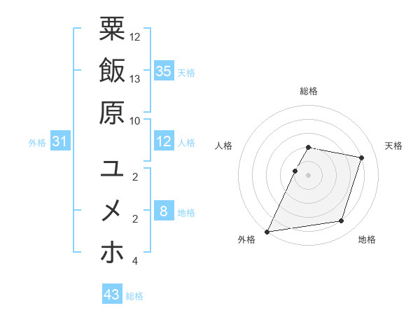 粟飯原 ユメホさんの総格は43画の2点!