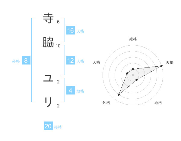 寺脇 ユリさんの総格は20画の1点!