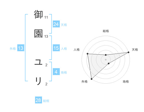 御園 ユリさんの外格は13画の5点!