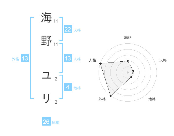 海野 ユリさんの外格は13画の5点!