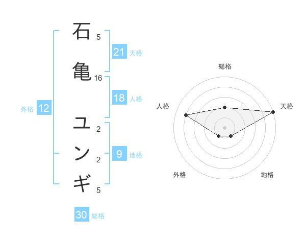 石亀 ユンギさんを姓名の画数から五運を鑑定