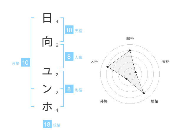 日向 ユンホさんの外格は10画の1点!