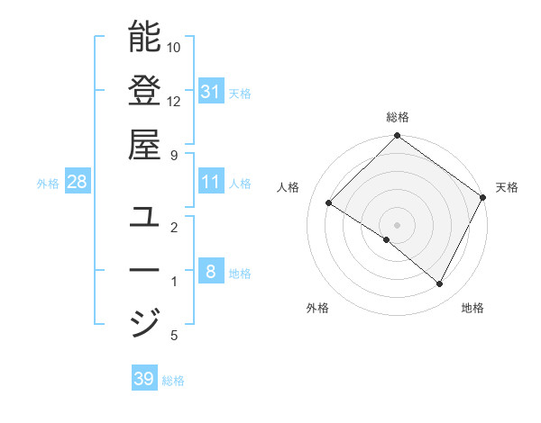 能登屋 ユージさんを姓名の画数から五運を鑑定