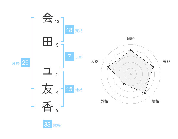 会田 ユ友香さんを姓名の画数から五運を鑑定