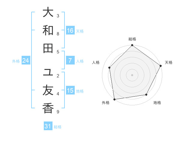 大和田 ユ友香さんを姓名の画数から五運を鑑定