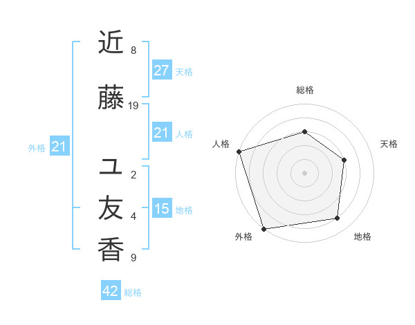 近藤 ユ友香さんの外格は21画の5点!