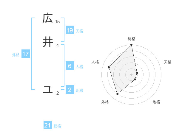 広井 ユさんの総格は21画の5点!
