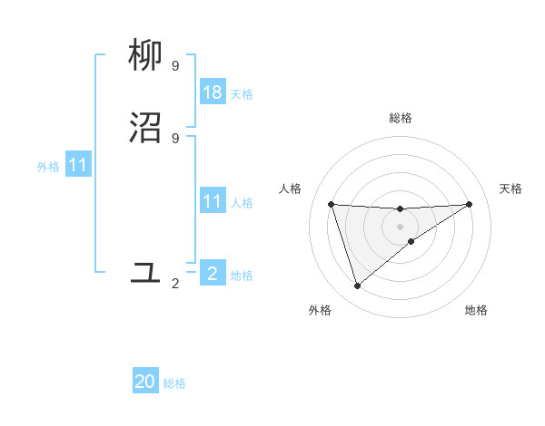柳沼 ユさんの外格は11画の4点!