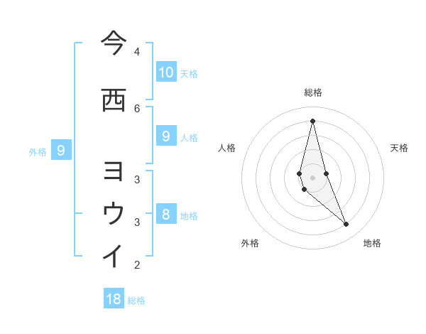 今西 ヨウイさんを姓名の画数から五運を鑑定